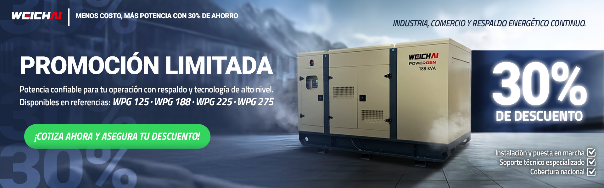 En S&P Generación llevamos una gran trayectoria ofreciendo soluciones energéticas confiables y eficientes. Nos enorgullece ser líderes en la venta de plantas eléctricas, brindando asesoría personalizada y productos de las mejores marcas del mercado.